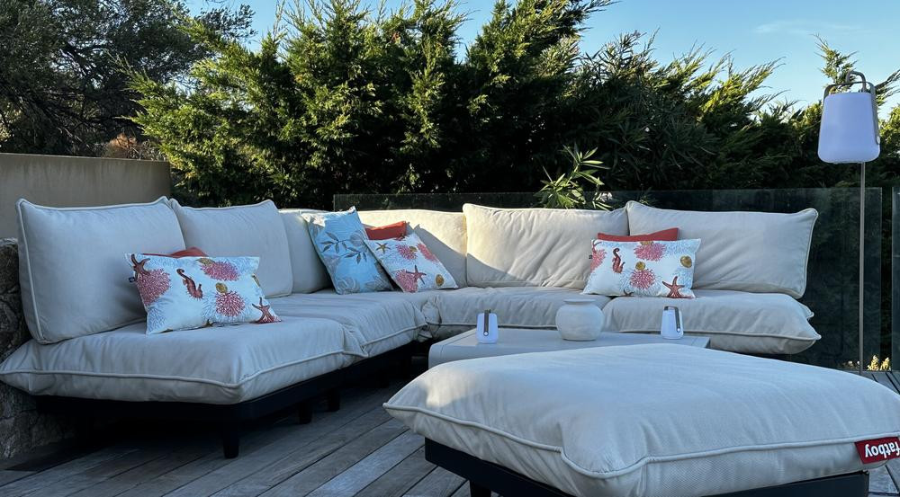 The 120 m² semi-covered terrace features garden furniture, a large dining table and a plancha area, not forgetting the heated infinity pool with sea view and deckchairs.