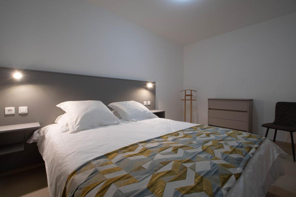 The residence comprises two sets of small buildings, arranged around a pedestrian walkway, itself surrounded by Mediterranean gardens with the scent of maquis. From the reception area, this walkway leads to the swimming pool.