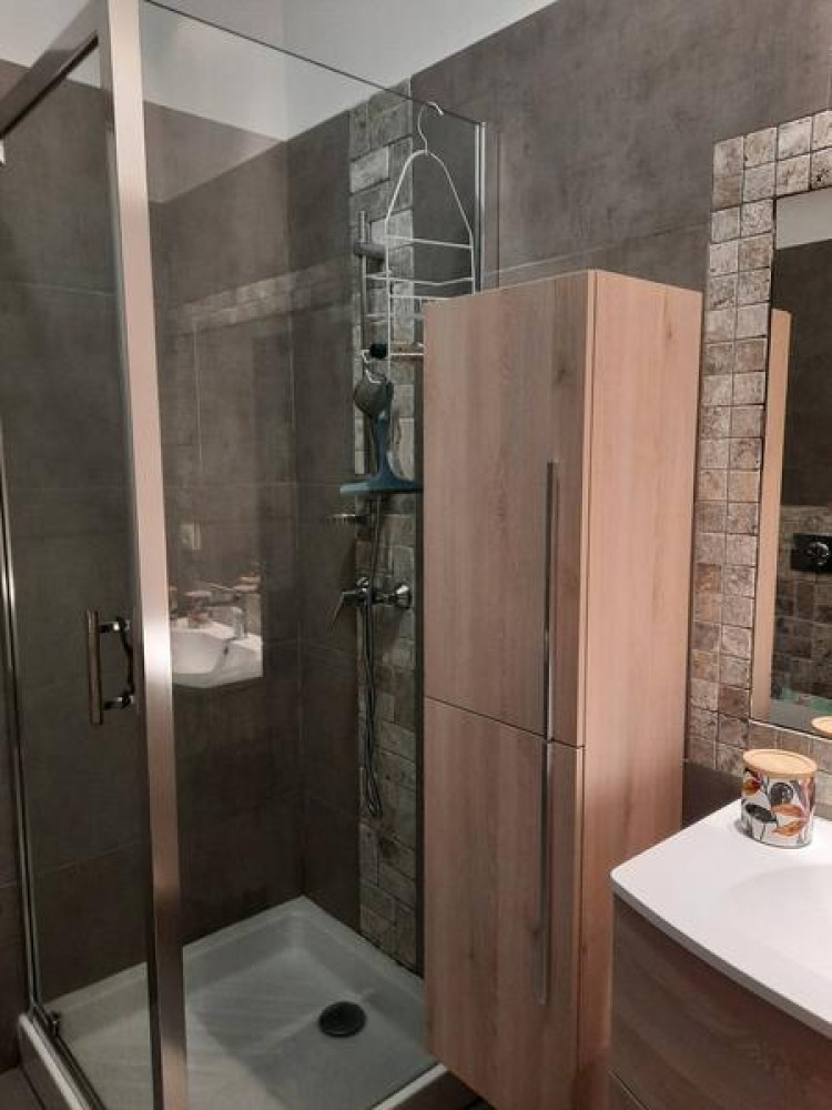 Bathroom with shower, WC, hairdryer and washing machine